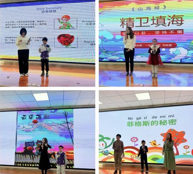 上午的分享环节,来自不同班级的十位小朋友轮流登台。他们用稚嫩却清晰的声音,讲述各自钟爱的故事。有的孩子带大家走进科学的探险,揭开太空探测器的秘密;有的从历史故事中品味古人的智慧与谋略;还有的领着听众潜入海洋深处,探索立体书里那些奇妙的生物世界。孩子们讲到《一个豆荚里的五粒豆》时,声音里透出对生命韧性的敬佩,而讲述《有一粒米思念袁隆平爷爷》的孩子,则让全场感受到那份跨越时空的感恩。提问互动的时候,他们回答得从容自然,积累的阅读经验和思考能力在这一刻显露无遗。看着这些七岁左右的孩子自信地表达,谁能不感慨,早早埋下的阅读种子,已经开始生根发芽。